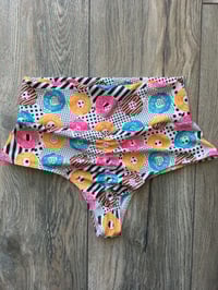 These adorable cheeky High Waisted Booty Shorts are taking sexy to new heights. These can be shorts or bikini bottoms hug your body in all the right places while showing off your best assets with a cheeky scrunch back! Color "Donuts" Fabric
